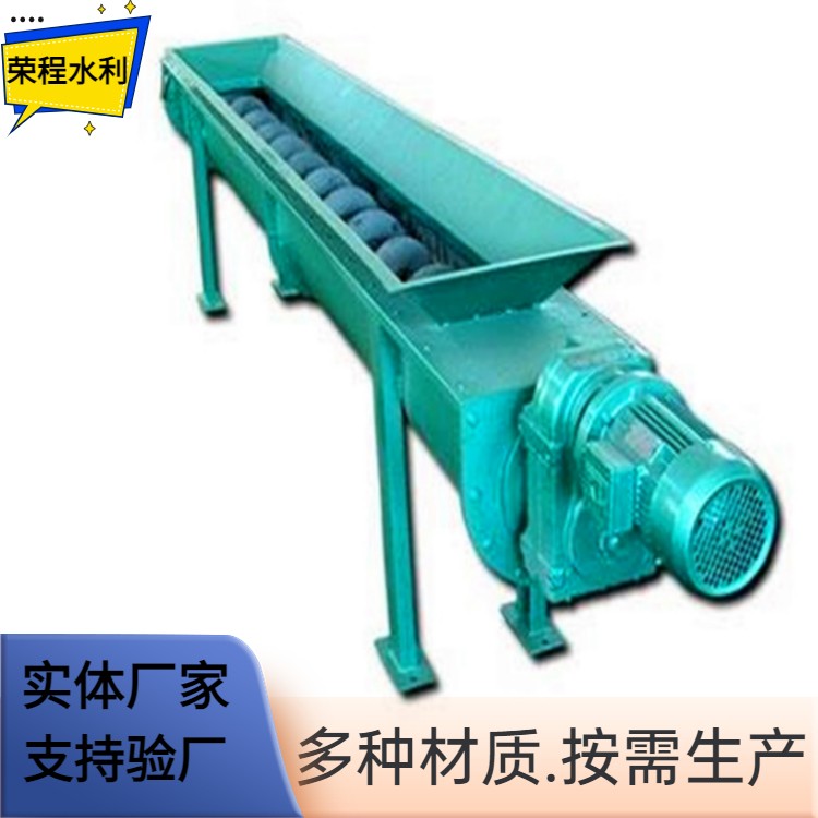螺旋輸送機旋轉軸上焊有螺旋葉片,葉片的面型根據輸送物料的不同有實體面型、帶式面型、葉片面型等型式。螺旋輸送機的螺旋軸在物料運動方向的終端有止推軸承以隨物料給螺旋的軸向反力,在機長較長時,應加中間吊掛軸承。