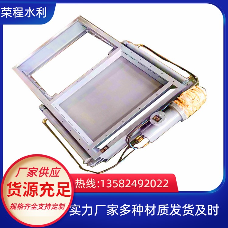 堰門采用明桿式結(jié)構(gòu)形式,平面加筋型、附壁式安裝,適用于安裝在墻上的升桿式方型或圓型孔口堰門,其平整的內(nèi)底與井壁緊密貼合。每個堰門帶有絲桿、接桿、連軸節(jié)及安裝在平臺上的帶推力軸承的啟閉機(jī),并配套護(hù)罩、桿導(dǎo)架、基礎(chǔ)螺栓等所有附件,電動裝置的潤滑油也隨機(jī)提供。